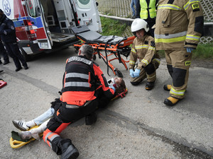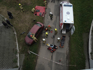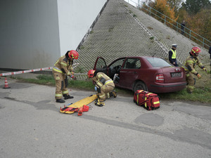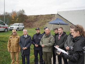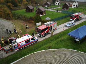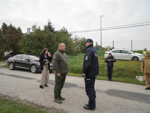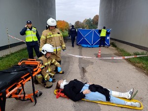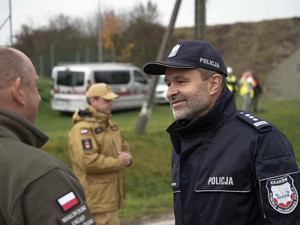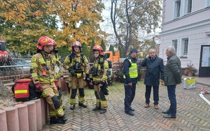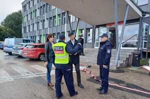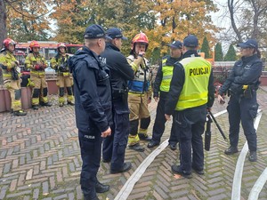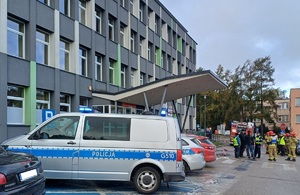 Natomiast w piątek (17 października br.) w godzinach porannych Oficer Dyżurny Komendy Powiatowej Policji w Miechowie otrzymał informację o ataku dywersyjnym na główny budynek Starostwa Powiatowego w Miechowie, w wyniku którego uszkodzeniu uległa ściana budynku starostwa. Dyżurny skierował policjantów z Zespołu Patrolowo – Interwencyjnego, celem ustalenia świadków okoliczności zdarzenia oraz zapewnienie ładu i porządku publicznego. Pracowicy starostwa zostali ewakuowani w bezpieczne miejsce. Skierowana została grupa dochodzeniowo – śledcza celem wykonania czynności procesowych i zabezpieczenia śladów, na miejscu również pracowali Strażacy z Państwowej Straży Pożarnej w Miechowie. Po skończonych ćwiczeniach pracownicy bezpiecznie powrócili do dalszej pracy.