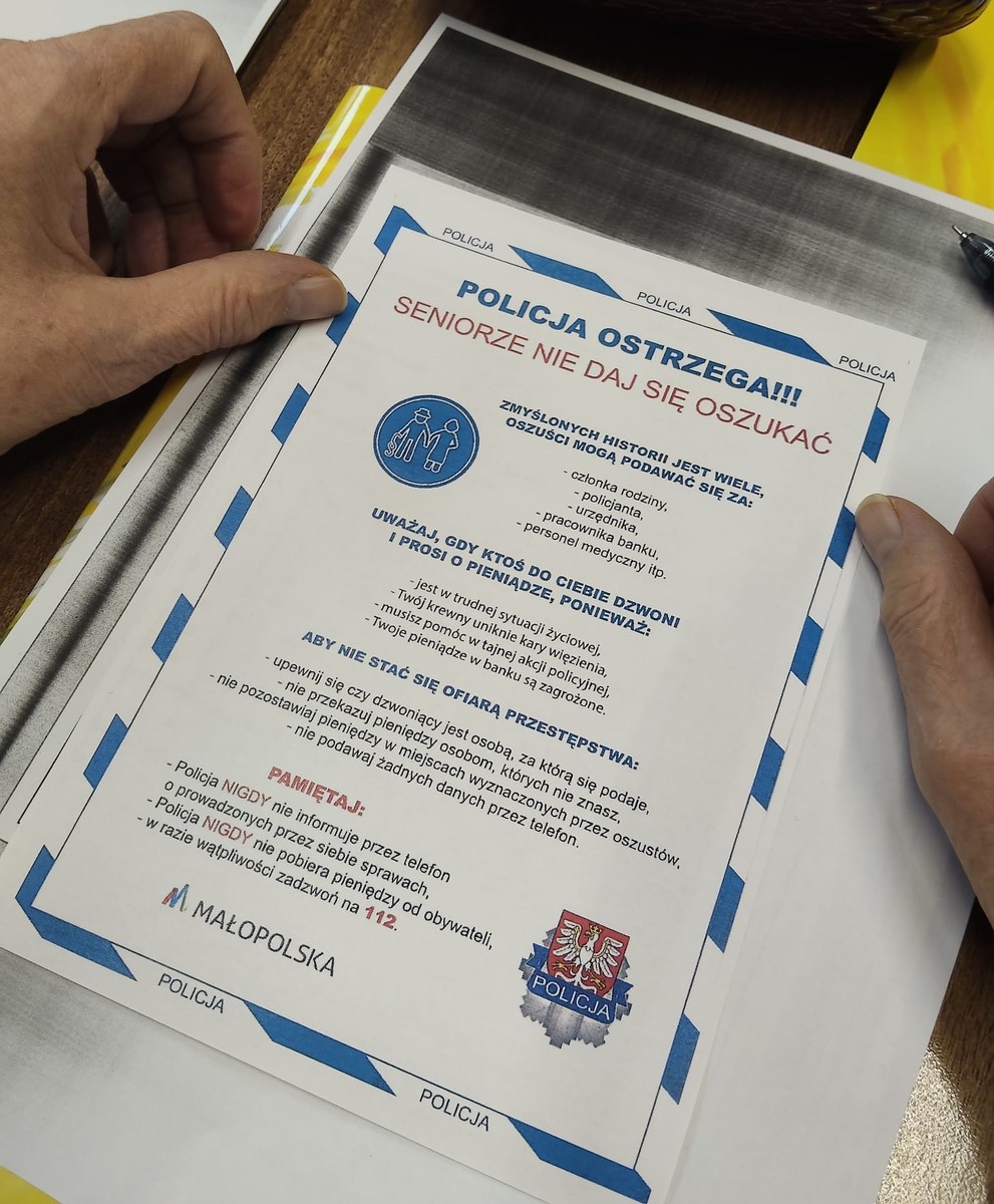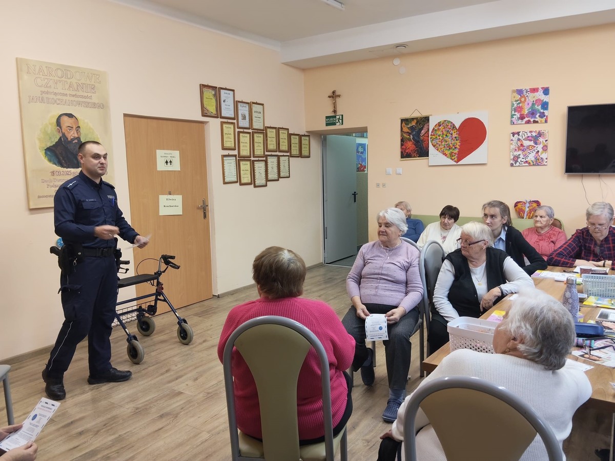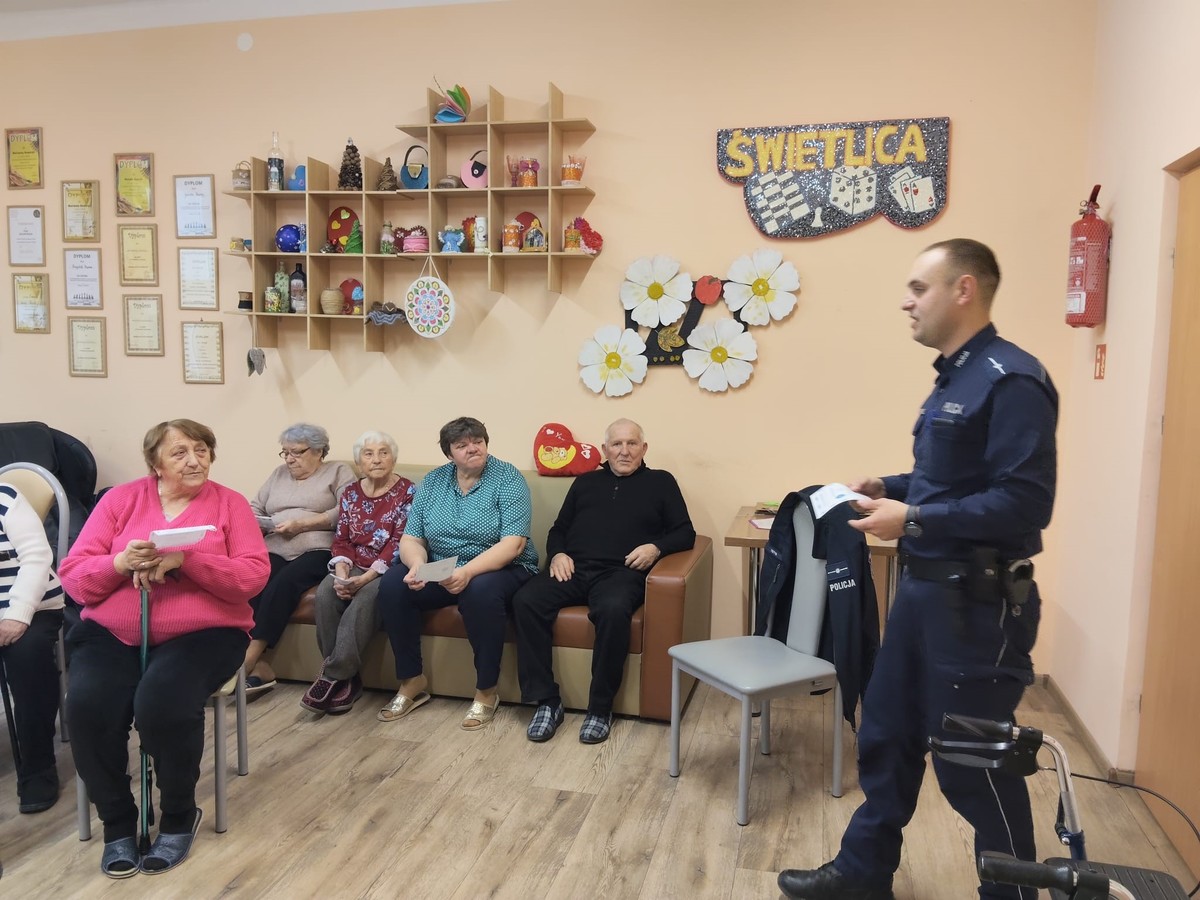 17 listopada br., w Środowiskowym Domu Samopomocy w Kępie, w powiecie miechowskim, Dzielnicowy z Posterunku Policji z Książa Wielkiego, uczestniczył w spotkaniu proflaktyczno – edukacyjnym. Głównym celem spotkania była pogadanka profilaktyczna, która miała na celu podniesienie świadomości osób starszych na temat różnych form oszustw, oraz przekazanie wskazówek jak ich uniknąć. Niestety osoby starsze ze względu na swoją ufność oraz niewystarczającą znajomość nowych technologii często stają się celem dla oszustów. Dlatego też dzielnicowy szczegółowo omówił przypadki najczęstszych metod działania oszustów. Przybliżył metodę m.in. „na wnuczka”, „na urzędnika” „na policjanta” czy „na przedstawiciela firmy”. Seniorzy na zakończenie spotkania otrzymali ulotki informacyjne, pn.” POLICJA OSTRZEGA!!! SENIORZE NIE DAJ SIĘ OSZUKAĆ.