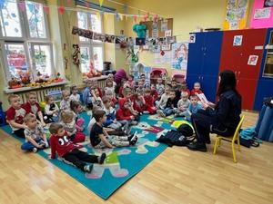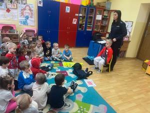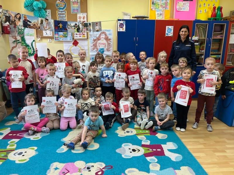 Na zakończenie spotkania policjantka wykonała dzieciom pamiątkowe odciski linii papilarnych oraz rozdała kolorowanki, które chętnie dzieci od razu malowały.