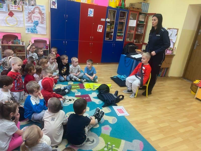 Policjantka z KPP w Miechowie podczas finału akcji „Dzieciństwo bez przemocy” odwiedziła uczniów ze Szkoły Podstawowej w Tczycy