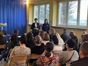 Porozmawiajmy o bezpieczeństwie dzieci i młodzieży. Policjantka z miechowskiej komendy na spotkaniu profilaktycznym z rodzicami uczniów
