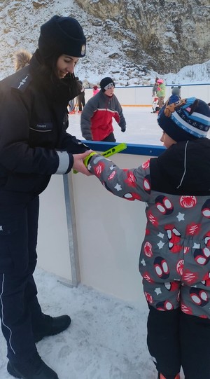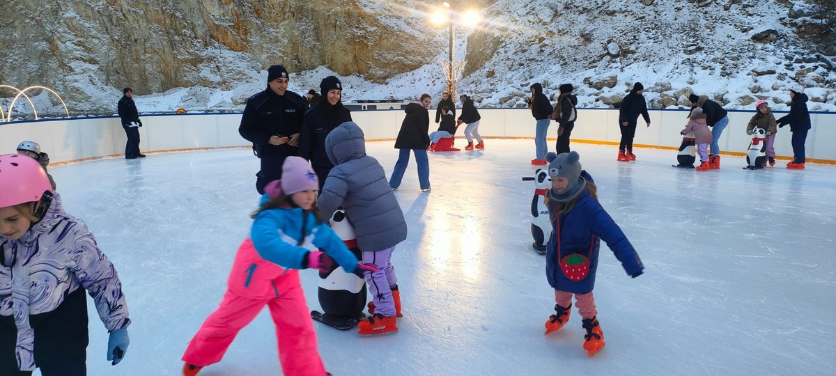 #DzielnicowyBliżejNas. Miechowscy mundurowi promowali bezpieczeństwo na lodowisku w Ulinie Wielkiej