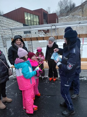Na lodowisku Ulina Park w miejscowości Ulina Wielka, policjantka z Wydziału Prewencji wspólnie z dzielnicowymi przeprowadziła działania profilaktyczne w ramach ogólnopolskiej akcji „Kręci mnie bezpieczeństwo w zimie”, a także przekazała informacje nt. konkursu plastyczno-filmowym pn. „Zimowy Dekalog”. Spotkanie z dziećmi, młodzieżą oraz dorosłymi było doskonałą okazją do rozmów na temat bezpiecznego spędzania wolnego czasu podczas rozpoczynającego się zimowego wypoczynku.