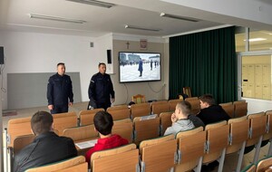 W Zespole Szkół nr 2 w Miechowie, uczniowie z klasy o profilu mundurowym uczestniczyli w pierwszych zajęciach, których tematem była musztra policyjna. Lekcje poprowadził I Zastępca Komendanta Powiatowego Policji w Miechowie – nadkom. Jerzy Wilk wraz z Zastępcą Naczelnika Wydziału Prewencji – podkom. Rafałem Bratkiem.