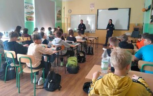 Uczniowie klas VI Szkoły Podstawowej nr 1 w Miechowie wzięli udział w spotkaniu profilaktyczno-edukacyjnym zorganizowanym przez funkcjonariuszy z Komendy Powiatowej Policji w Miechowie. Głównym celem spotkania było zwiększenie świadomości wśród młodzieży dotyczące poruszania się hulajnogami elektrycznymi.